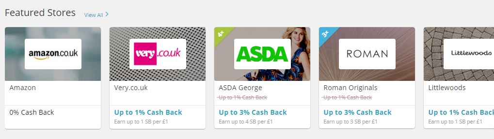 I looked into this in more detail and there are some shops that give you a reasonable rate of return – for example Ann Summers had a 5% SB rate – up to 6 bucks/pounds which if you wanted to shop here isn’t unreasonable. Ebay also gave the equivalent of 1% which is ok I guess.